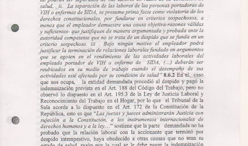 En primera instancia, el reclamo planteado por los derechos conculcados fue negado, sin embargo, la Sala Laboral de la Corte Provincial de Justicia del Azuay, en su fallo emitido en fecha 04 de Abril de 2017, acepta el recurso de apelación planteado por la parte actora y por ende establece la responsabilidad de Banco de Guayaquil S.A. respecto de este despido por discriminación, cumpliendo de manera expresa con aquel postulado consagrado en el primer artículo de nuestra Constitución: "El Ecuador es un Estado constitucional de derechos y justicia..."